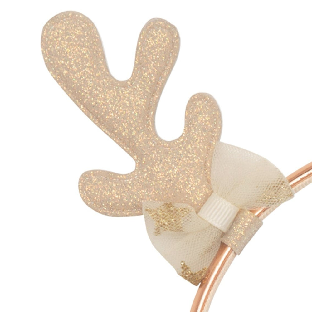 Vyrobená v zlatej farbe s jemnými sobími rohmi zdobenými trblietavými glitrami krásne podčiarkuje detský pôvab a je ideálna na vianočné alebo zimné večierky.