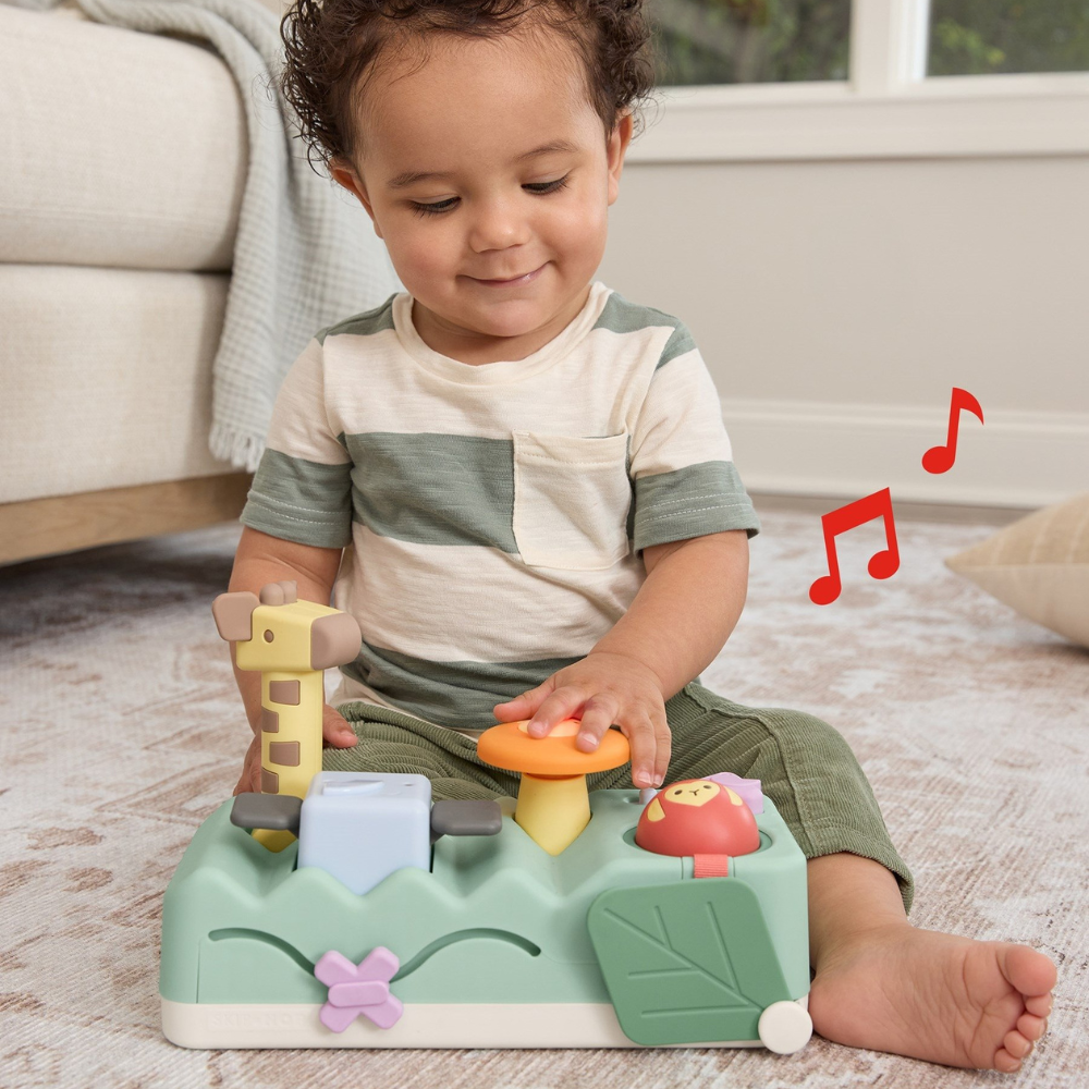 Hračka s hudbou a ťukaním od Skip Hop je jedinečná hračka 2 v 1, ktorá spája zábavu pri ťukaní s hudobným dobrodružstvom plným farebných svetielok, zvukov zvierat a vzrušujúcich prvkov na objavovanie.