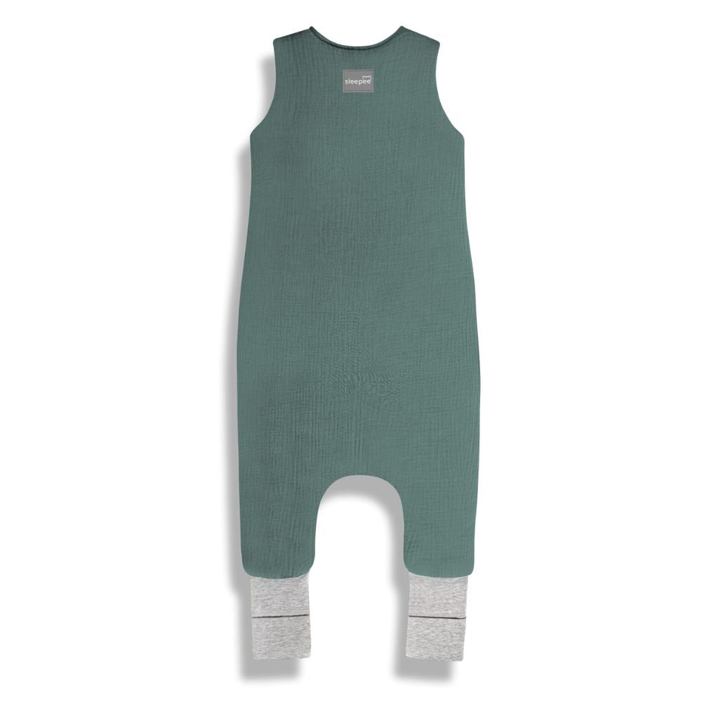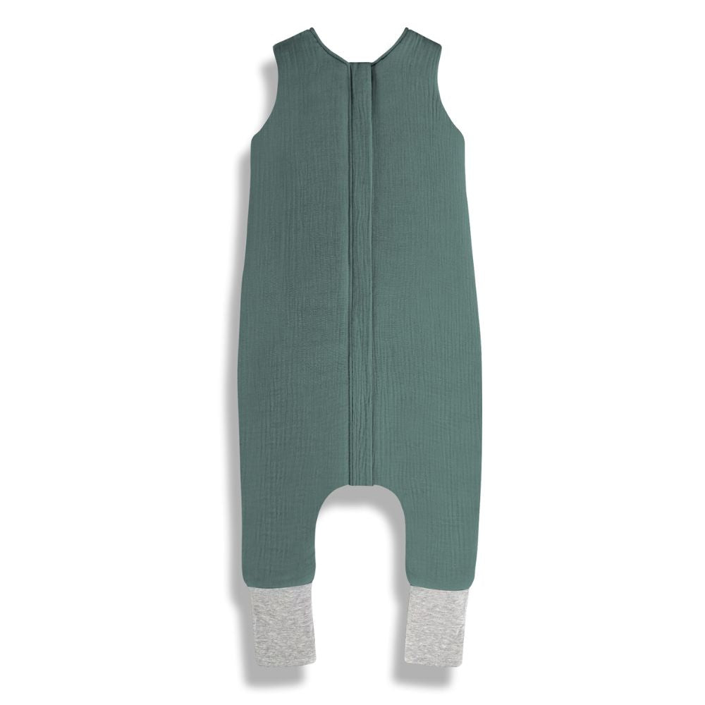 Mušelínový spací vak Sleepee s nožičkami vo farbe morskej zelenej.