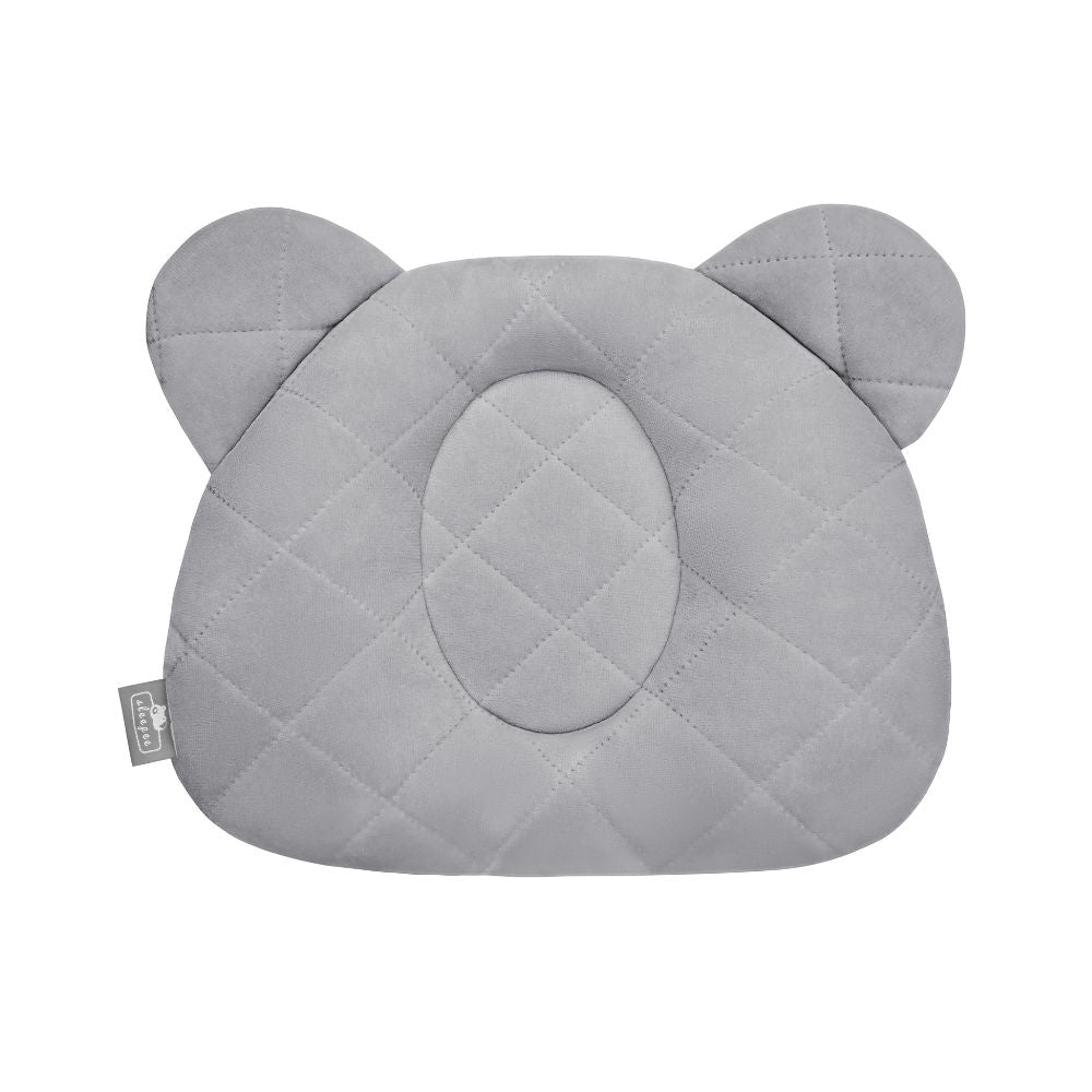Detský vankúš Sleepee je vyrobený z mäkkého velúru a má tvar hlavy medvedíka.
