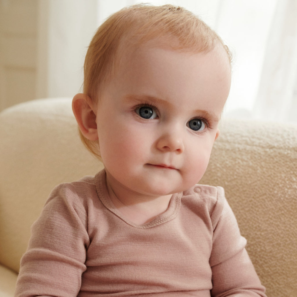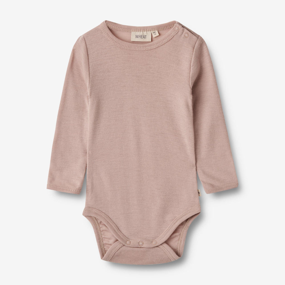 Wheat vlnené detské body s dlhým rukávom Lucca dry rose