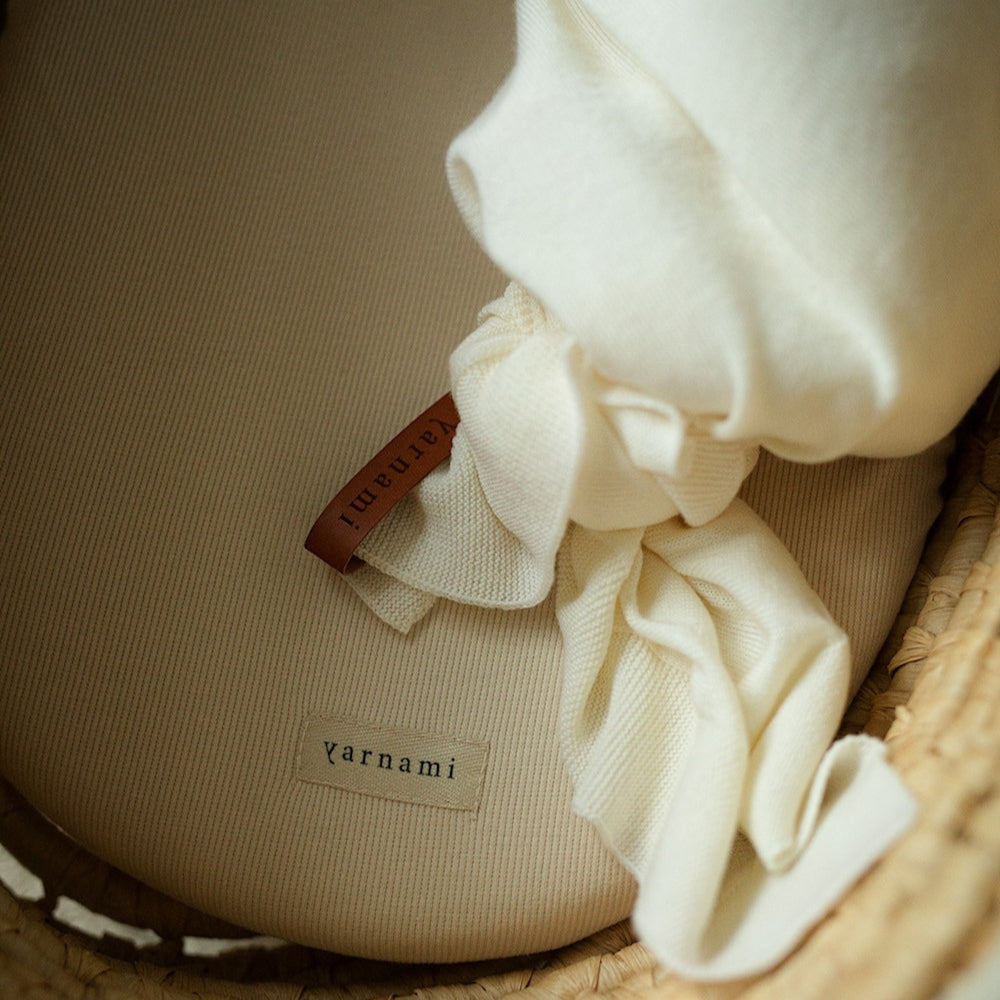 Prestieradlo do kočíka Yarnami by Poofi je kombináciou prírodných materiálov, vysokej kvality spracovania a výnimočného pohodlia pre dieťa.