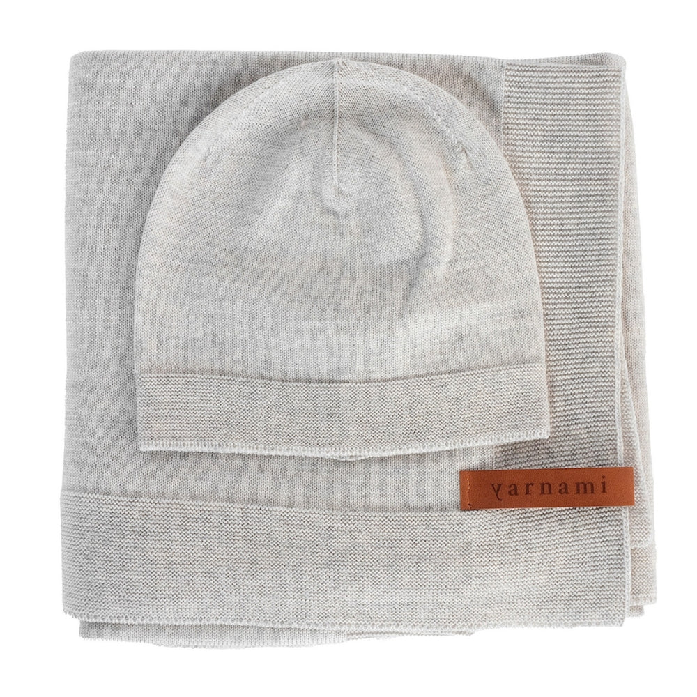 Yarnami by Poofi Útulná merino súprava pre bábätká béžovo-sivá